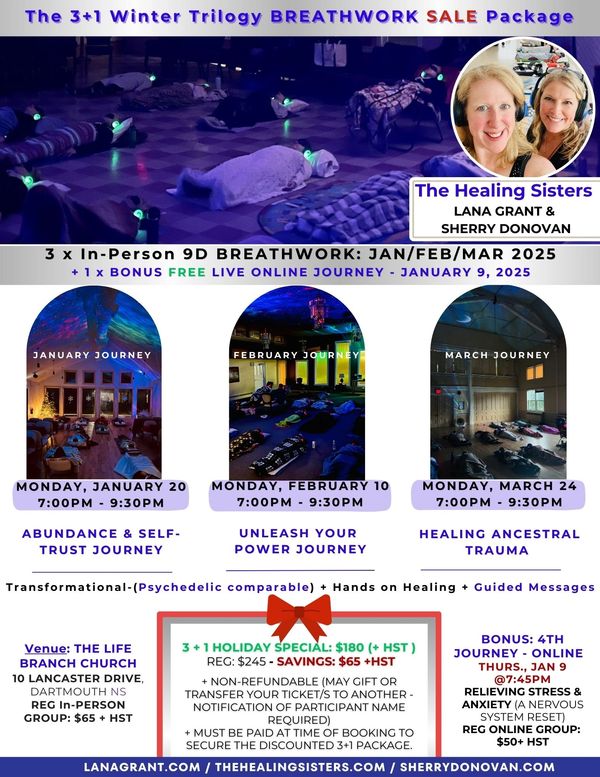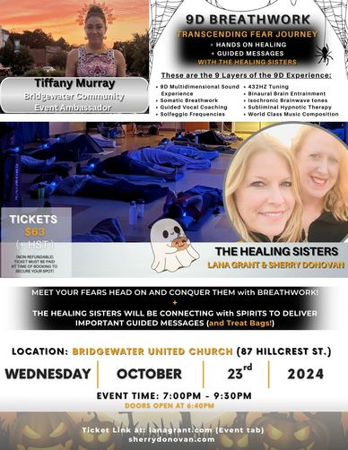 4. Wednesday, April 16/2025 - BRIDGEWATER - GROUP BREATHWORK + GUIDED MESSAGES EVENT with THE HEALING SISTERS at the Bridgewater United Church from 7-9:30pm (doors open at 6:30pm)