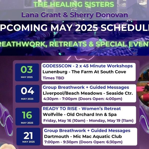 4. Wednesday, May 21/2025 - DARTMOUTH - GROUP BREATHWORK + PSYCHIC GUIDED MESSAGES EVENT with THE HEALING SISTERS at the Mic Mac Aquatic Club.