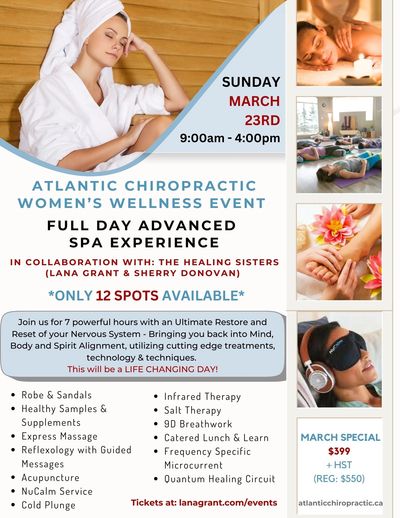 Sunday - March 23, 2025 - Atlantic Chiropractic Women’s Wellness Event - Full Day Advanced Spa Experience.