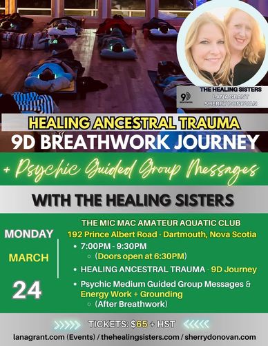 2. Monday, March 24/2025 - DARTMOUTH - GROUP BREATHWORK + PSYCHIC GUIDED MESSAGES EVENT with THE HEALING SISTERS at the Mic Mac Aquatic Club.